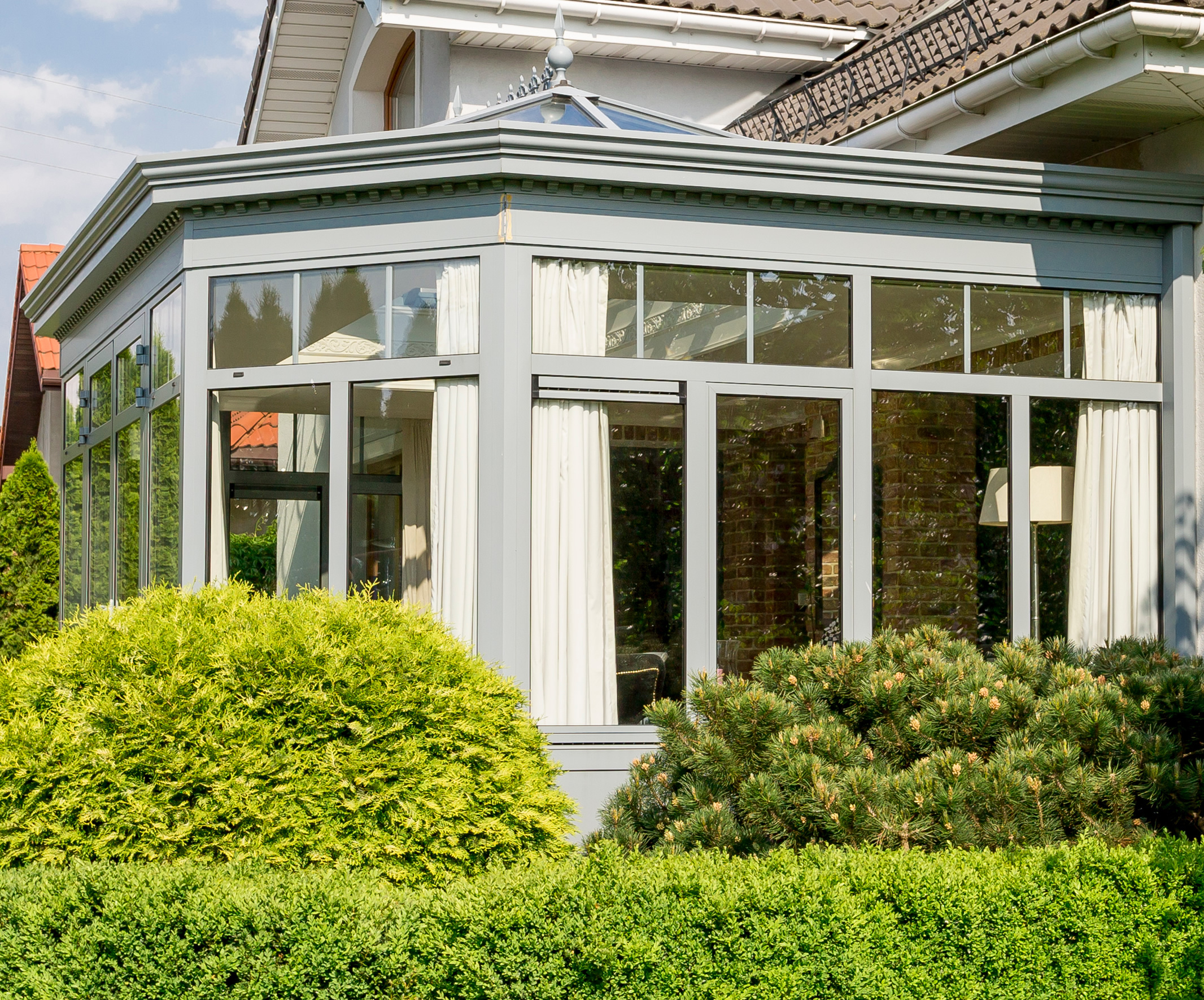 This versatile space is a fully integrated additional room for the whole family, a practical kitchen extension or a solidly reliable and temperature controlled entertainment area all year round. Orangeries are a beautiful extension to any home, traditionally taking on the existing features and expanding on them to create a seamless connection from indoors to outdoors.